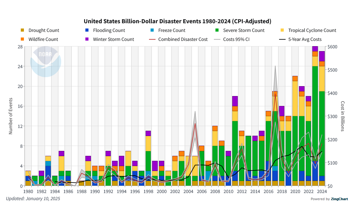 Overall, this last year has cost the U.S. nearly $200 billion in climate disasters, second only to 2023—and they’re not done calculating.