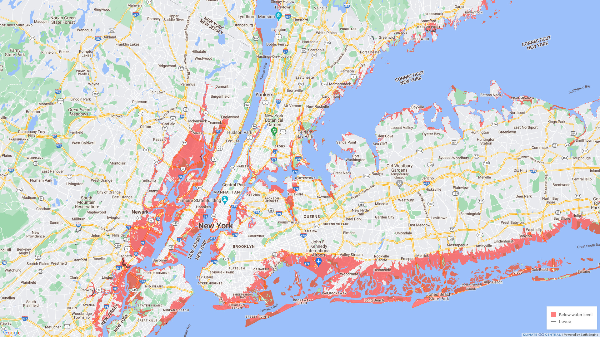 So, the doomsday glacier could melt “much faster” than a hundred years. Let’s say we take Dow at her words, and it melts within a few decades, raising sea levels up to 11 feet. Here’s what New York looks like:
